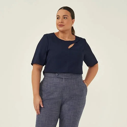 Blusa Manga Curta com Gota e Botão Plus Size Marinho Nany