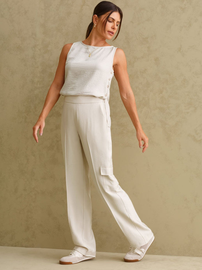 Blusa sem Mangas Decote Redondo em Crepe Aveia Vanusa