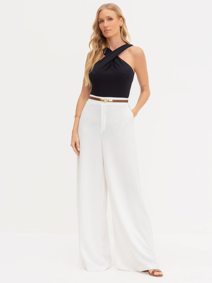 Calça Alfaiataria Pantalona Off White Paola