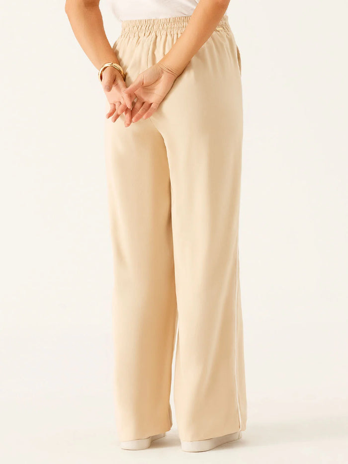 Calça Alfaiataria Wide Leg em Viscose Aveia Vitoriana