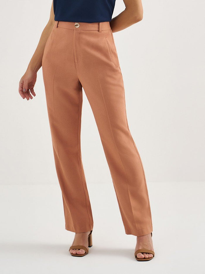 Renove seu closet com a Calça Reta Regular de Alfaiataria em Viscose Camel Cleide. Parcele sua compra em até 10x sem juros e ganhe frete grátis.