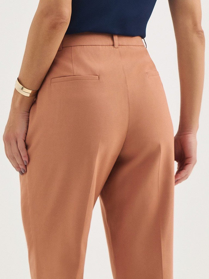 Calça Reta Regular de Alfaiataria em Viscose Camel Cleide