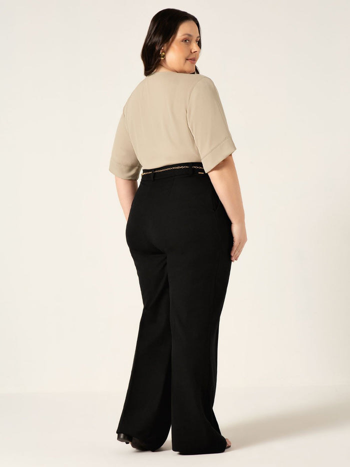 Calça Reta Slim de Alfaiataria com prega Plus Size Ana Iris