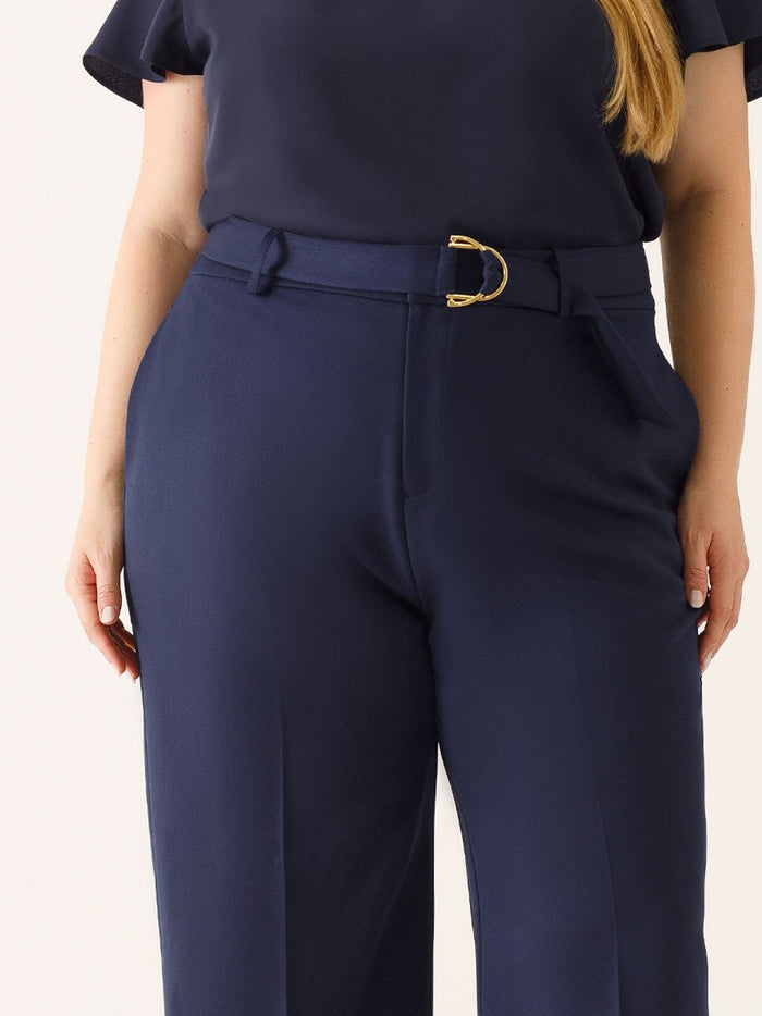 Calça Wide Leg de Alfaiataria Plus Size Marinho Índigo Cora