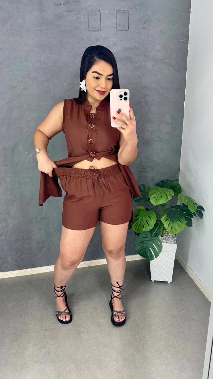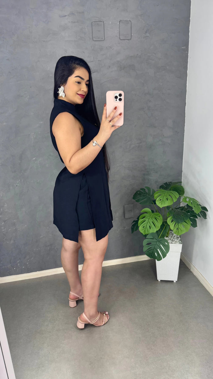 Conjunto elegante e sofisticado, com modelagem estruturada que valoriza a silhueta e transmite um visual moderno e refinado. Peça versátil, ideal para composições do casual chic ao social, garantindo conforto e estilo em qualquer ocasião.