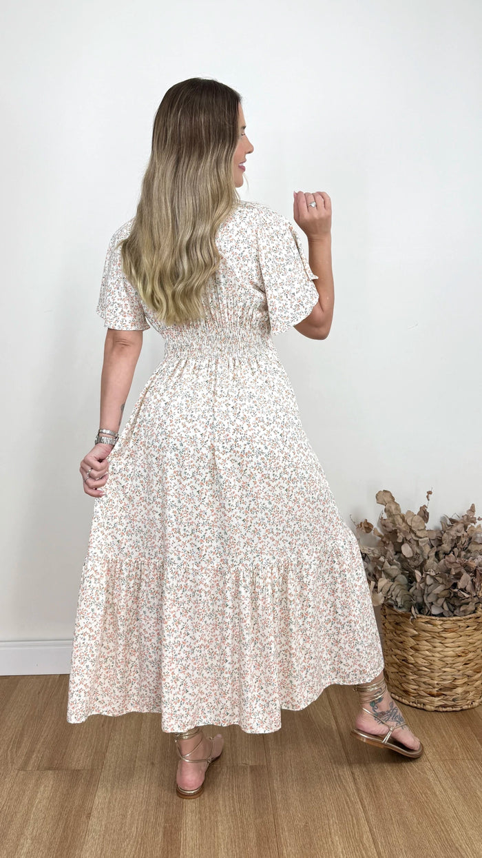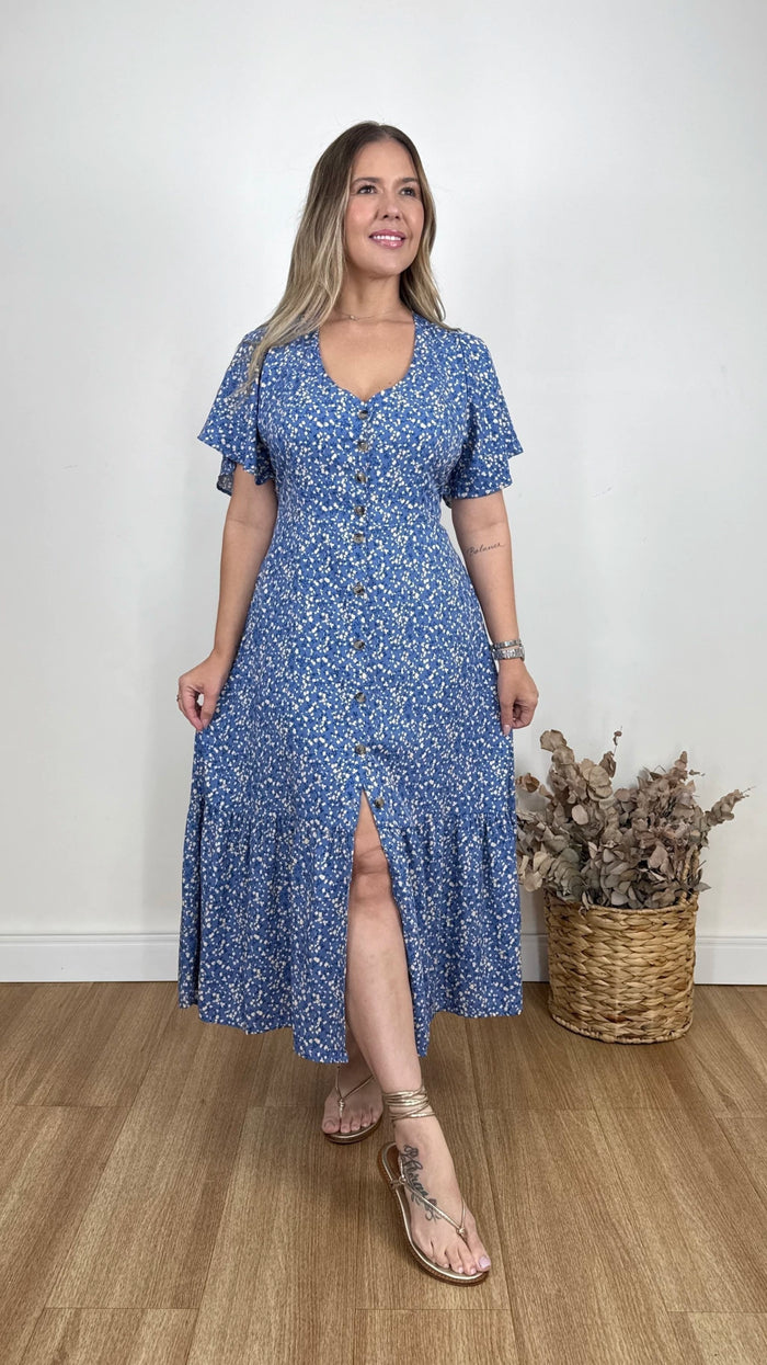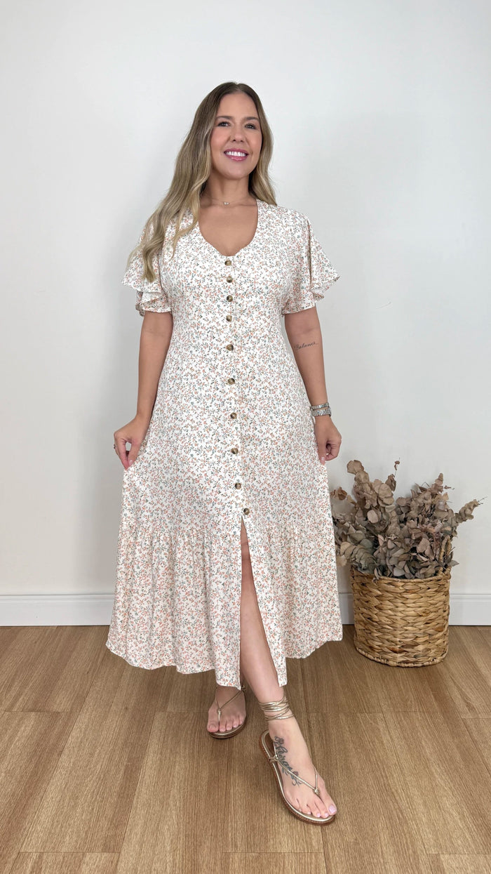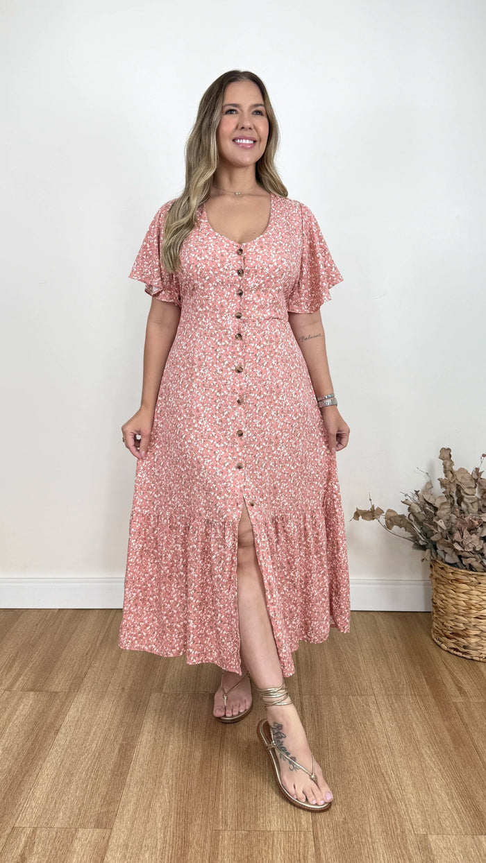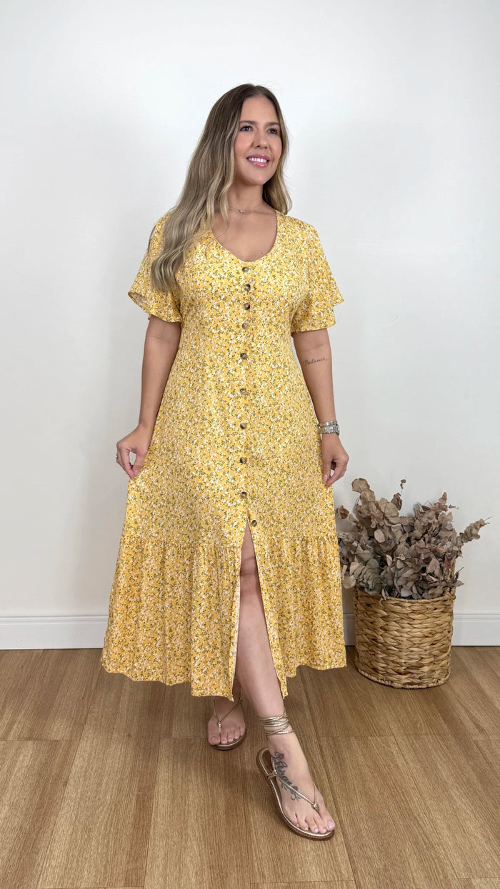 Vestido midi em viscolinho que combina delicadeza, elegância e conforto, com toque suave e caimento natural. Possui botões frontais funcionais que adicionam charme e versatilidade, além de forro interno e lastex nas costas para melhor ajuste ao corpo. Ideal para composições do casual ao sofisticado.