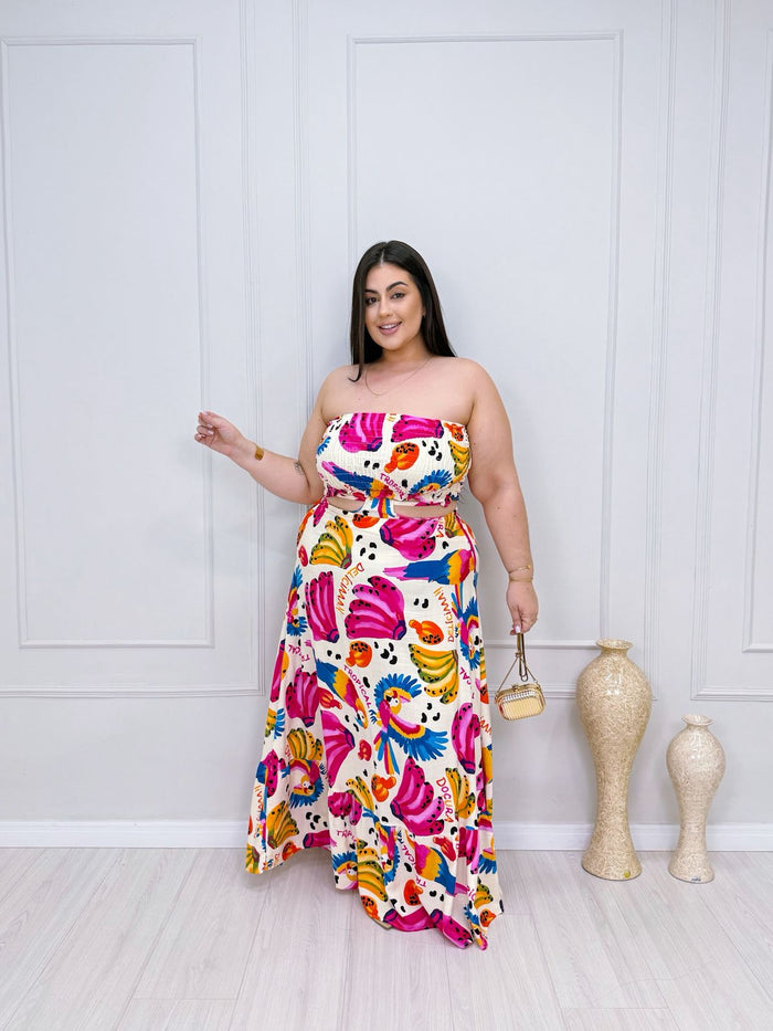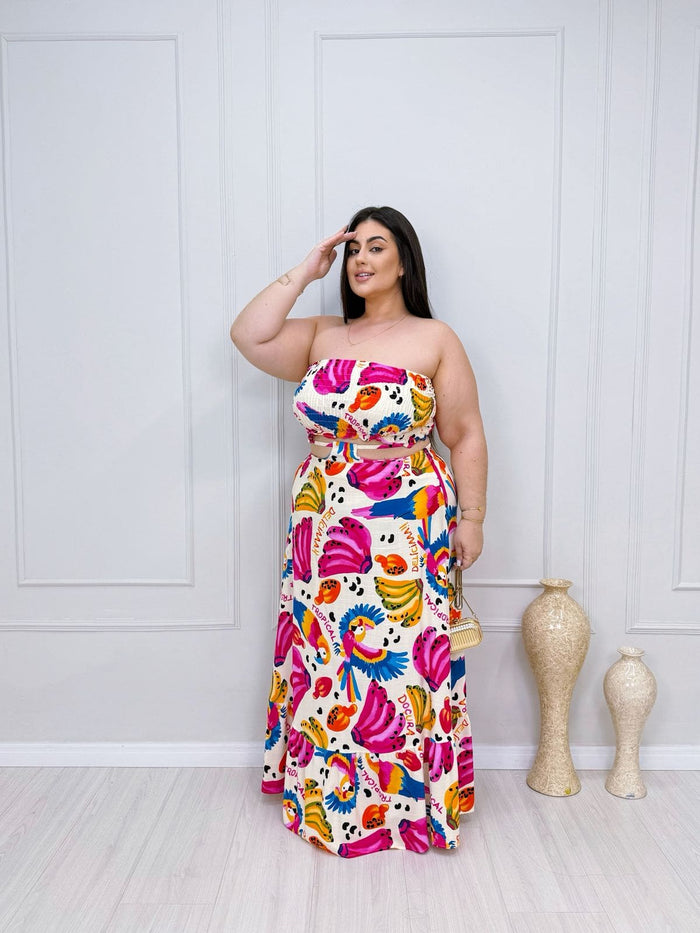Vestido plus size confeccionado em tecido sensorial, leve e confortável, com caimento fluido que valoriza a silhueta com elegância e liberdade de movimento. O modelo possui lastéx na parte superior, proporcionando melhor ajuste ao corpo e segurança ao vestir.